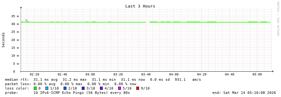 15 > 2604:2dc0:307::2:0:377 (2604:2dc0:307::2:0:377) [AS16276] 27.619ms 27.593ms 27.609ms