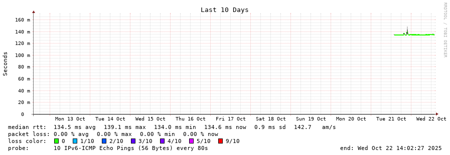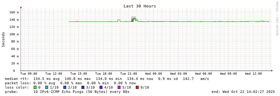traceroute to 2a0b:2f00:0:234::151 (2a0b:2f00:0:234::151), 30 hops max, 80 byte packets - Generated at 2025-10-22 01:00:01