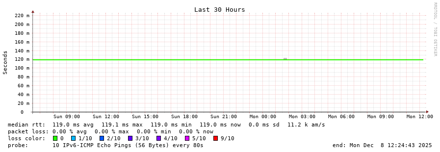 traceroute to 2a00:c560:c0c0:1a1a::9 (2a00:c560:c0c0:1a1a::9), 30 hops max, 80 byte packets - Generated at 2025-12-07 12:30:01